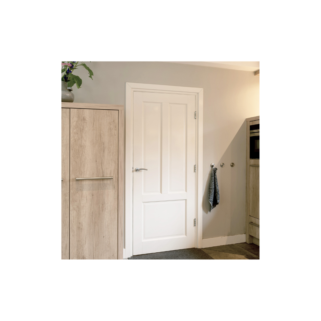 Standaard uitgevoerd met bossing panelen en een facet profiel. Leverbaar in standaard deurmaten. Standaard wit gegrond en voorzien van een slotgat t.b.v. de Nemef 1200 serie.