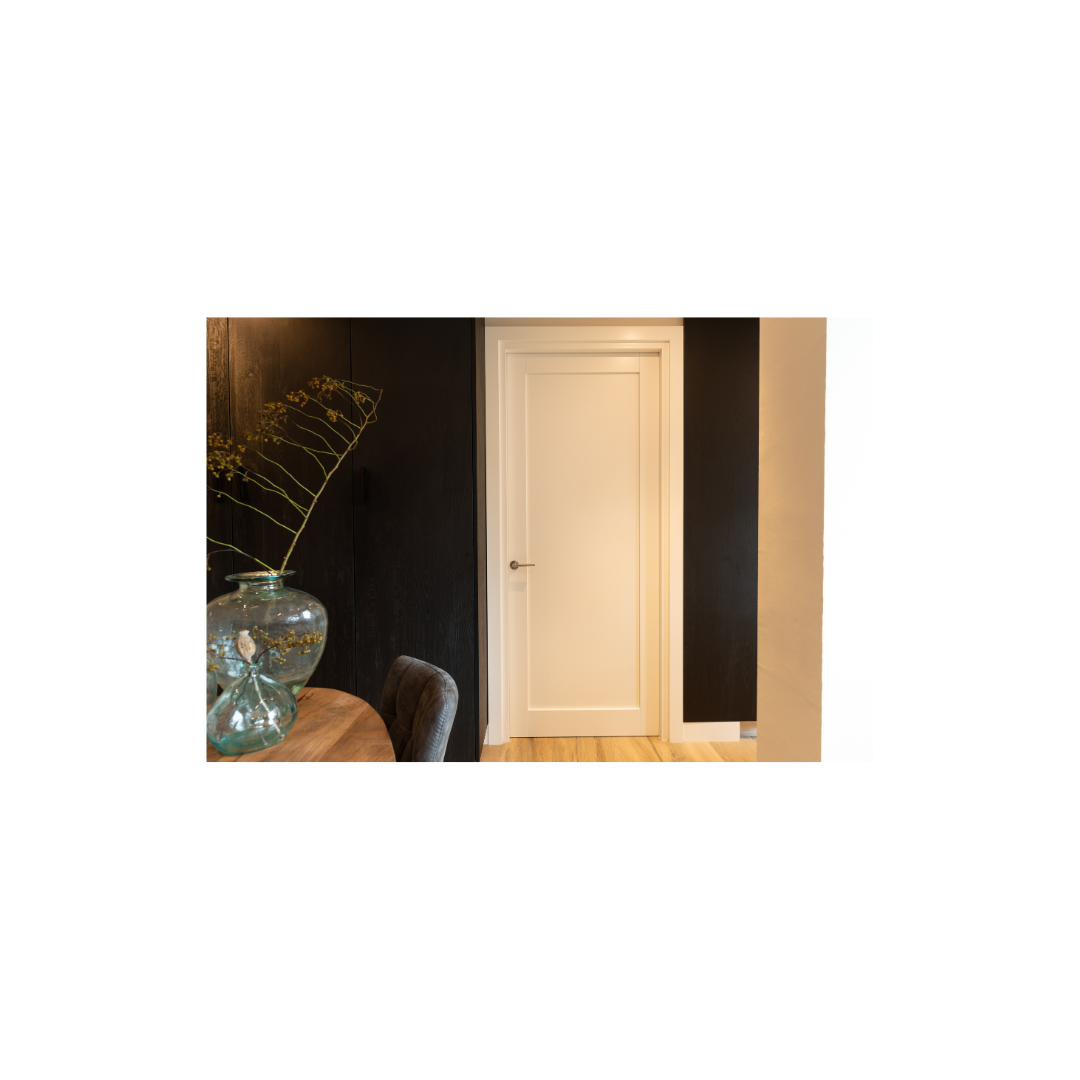 Standaard uitgevoerd met een vlak paneel en een recht profiel. Stomp, wit gegrond, inclusief slotkastgat + voorplaatboring nemef 1200. Leverbaar in standaard deurmaten.