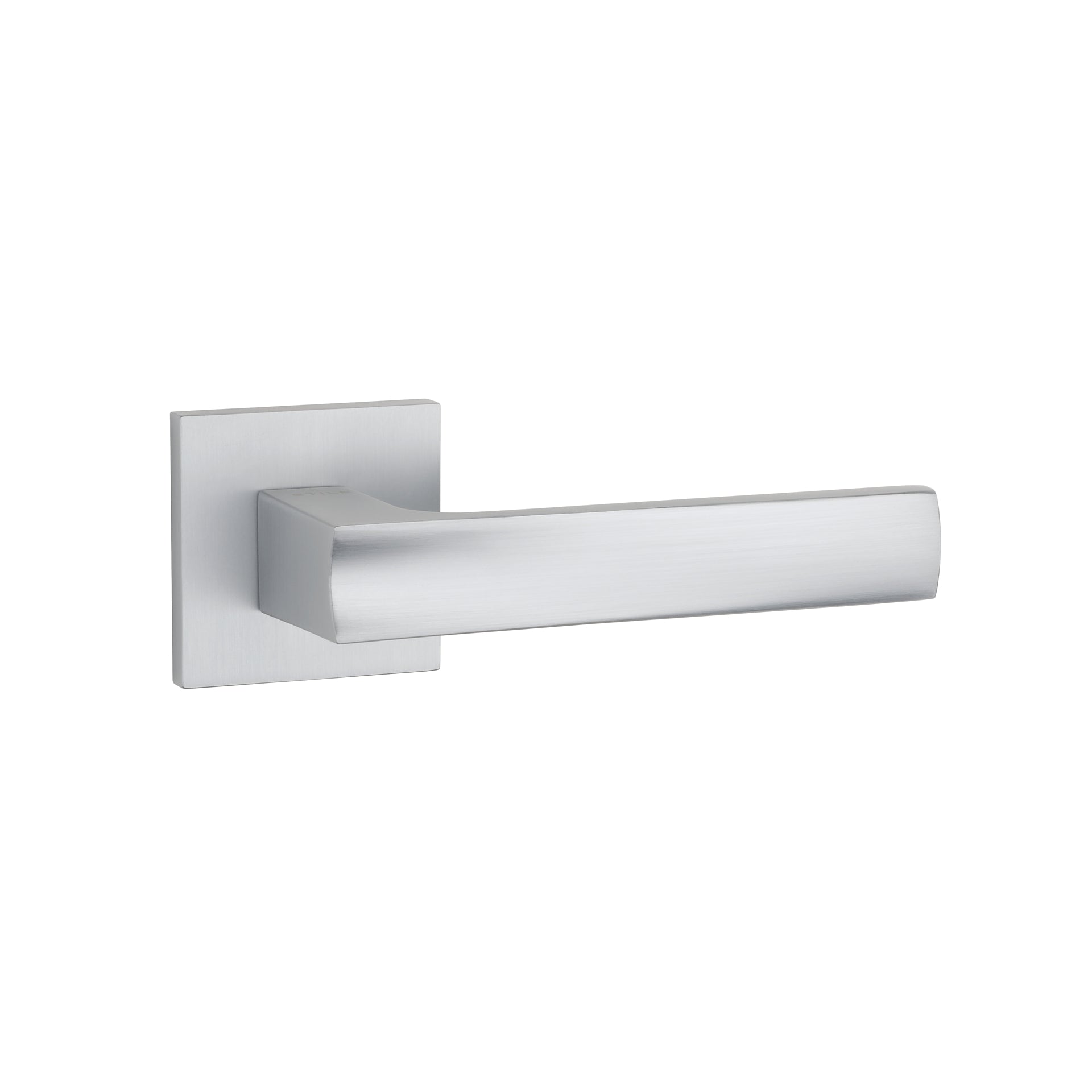 De moderne deurklink LIMA is uitgevoerd in een stijlvolle mat Chrome afwerking en geplaatst op geveerde, vierkante rozetten van 53x53 mm en 7 m dik. Deze zijn uit één stuk vervaardigd voor een strakke, naadloze look. Metalen onderrozetten zorgen voor extra stevigheid en langdurig gebruik.