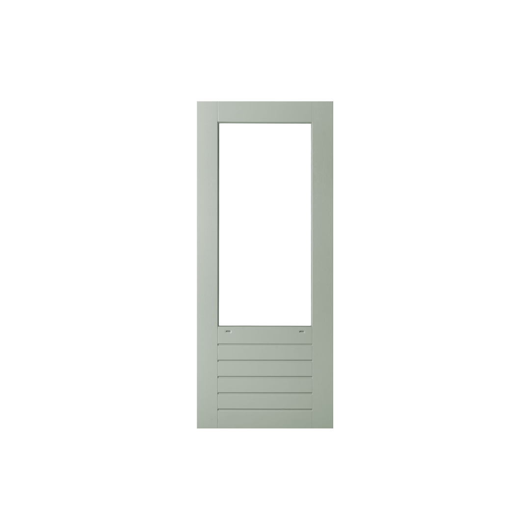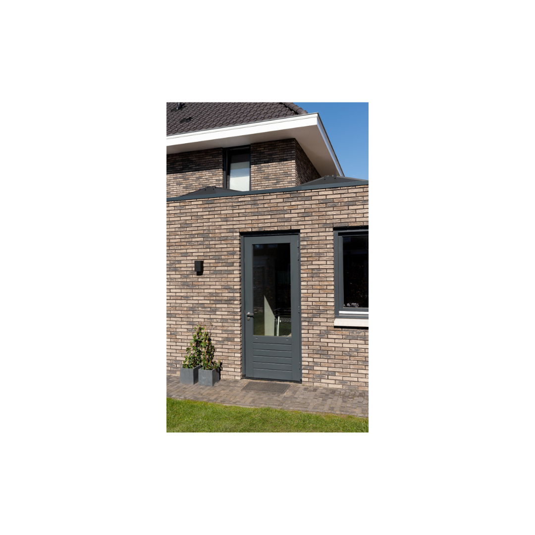 Weekamp achterdeuren met dorpels zijn standaard grijs voorgelakt en voorzien van ventilatiesleufjes en voorgeboorde vlakke isoglaslatten.