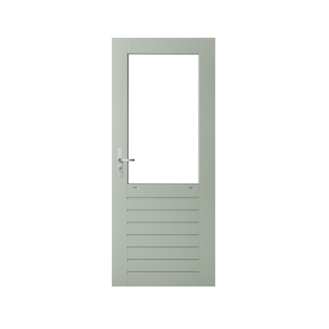 Weekamp achterdeuren met dorpels zijn standaard grijs voorgelakt en voorzien van ventilatiesleufjes en voorgeboorde vlakke isoglaslatten.